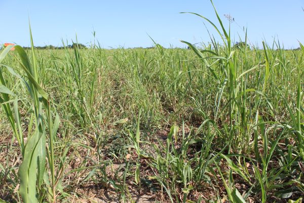Toujours dans l’optique de retenir le sable, il investit depuis quelques années dans des bacs de décantation. Situés à la sortie de la parcelle, ces dispositifs de 5 à 10m² permettent de collecter le sable qui tombe au fond du trou, alors que l’eau s’écoule par une buse de sortie plus élevée que celle amenant l’eau. Là aussi, il a pu s’appuyer sur l’expertise du SYLOA. « Il faut penser à les curer deux fois par an. Nous utilisons le sable récupéré pour améliorer les parcelles trop argileuses ou dans le lit de pose des tranchées d’irrigation », énumère-t-il. Autre levier d’action sur la qualité de l’eau, Gilbert Pineau implante désormais un couvert végétal de sorgho sur les parcelles libres l’été. « Cela permet de maintenir la vie du sol, de limiter le ravinement, et de créer du micro-drainage avec le système racinaire. Le sorgho est ensuite enfoui pour augmenter le taux de matière organique des parcelles et améliorer leur capacité de rétention d’eau » souligne, le maraîcher.
